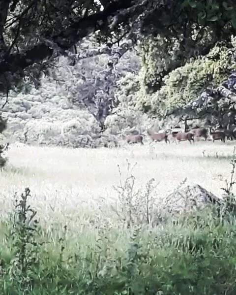 Old holm oak trees upholster hills, grasslands and creeks. Junipers and Oaks find way among great granite boulders. The game feasts on the acorn forest, on the grasslands. Meadows with ponds that serve as perfect set up for blinds. Boulders covered with moss that attenuates the sound of the stalker, often give shelter to the game.